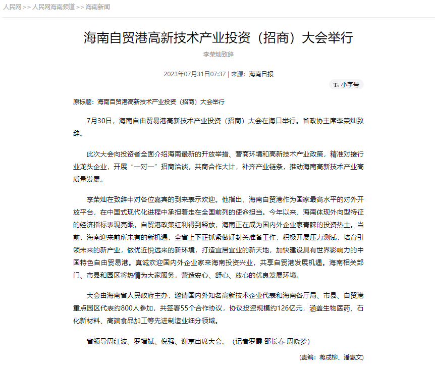 中霆世紀(jì)參加海南自貿(mào)港高新技術(shù)產(chǎn)業(yè)投資(招商)大會